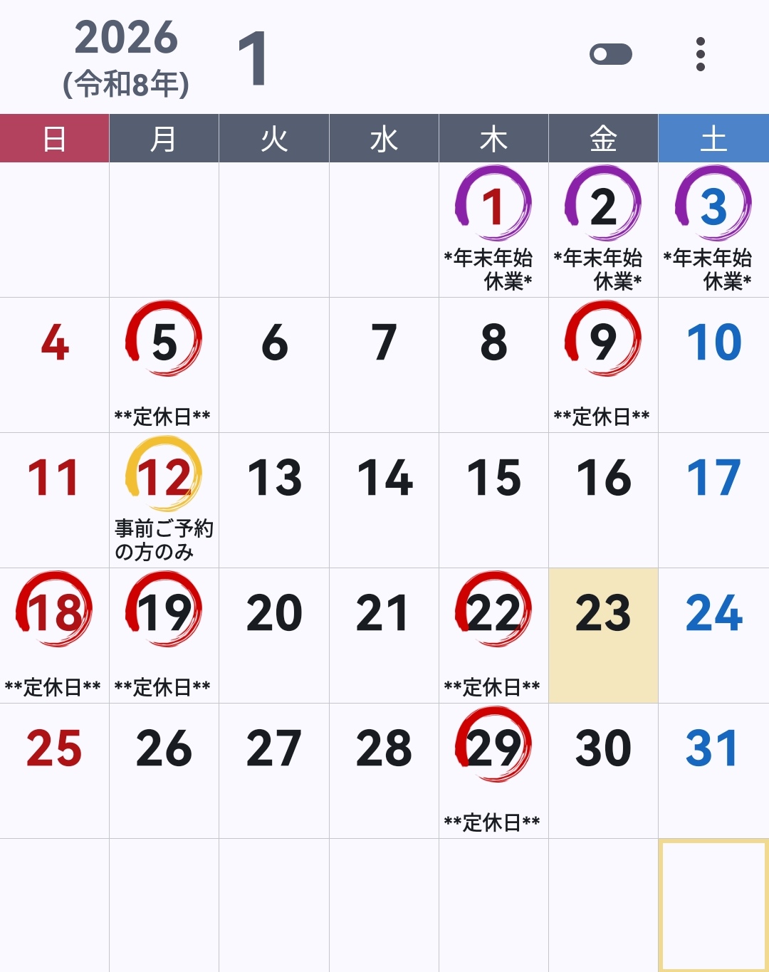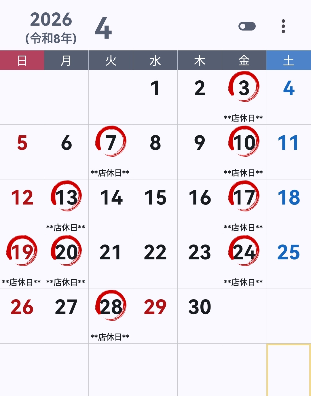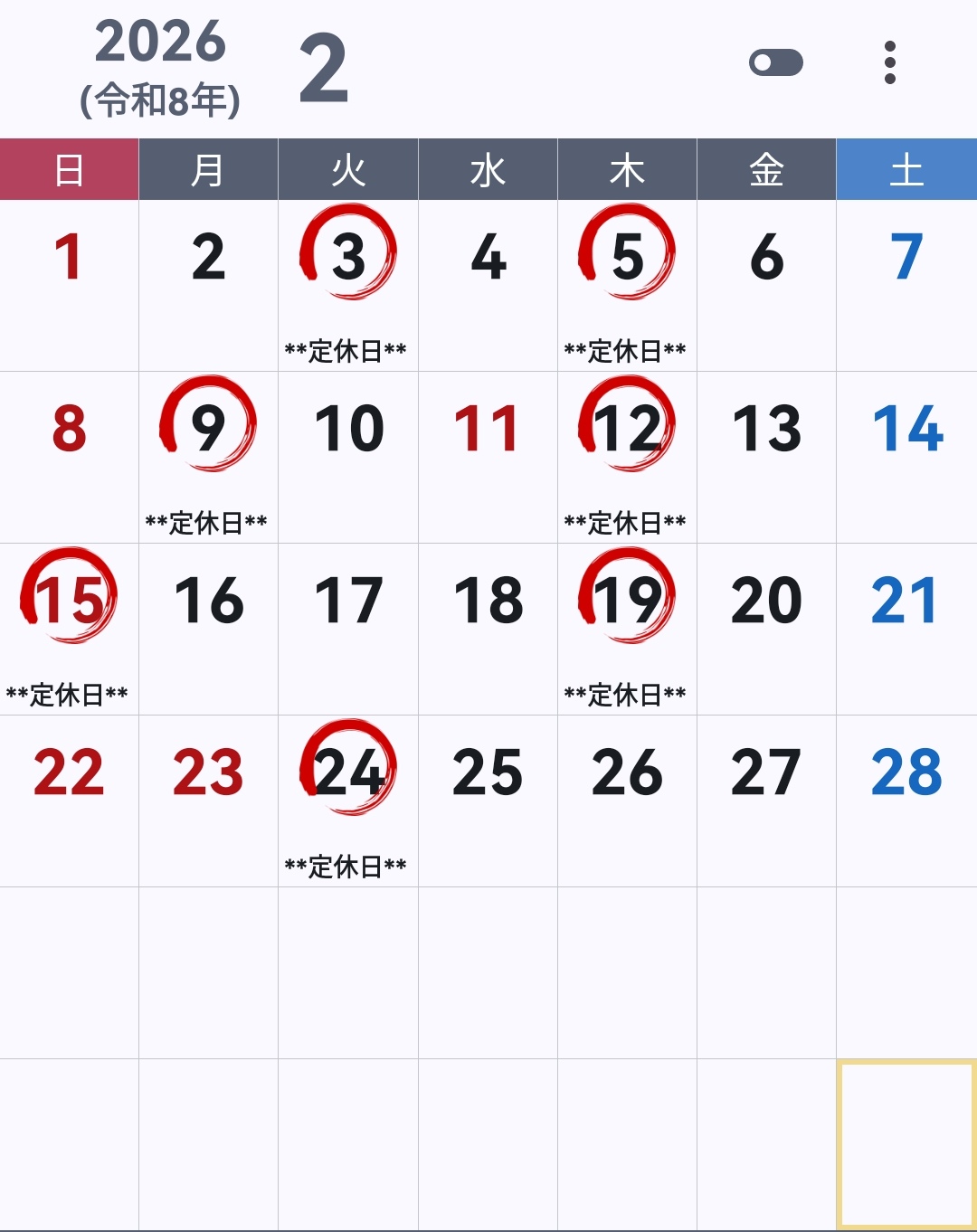 ▶ 赤丸はお休み