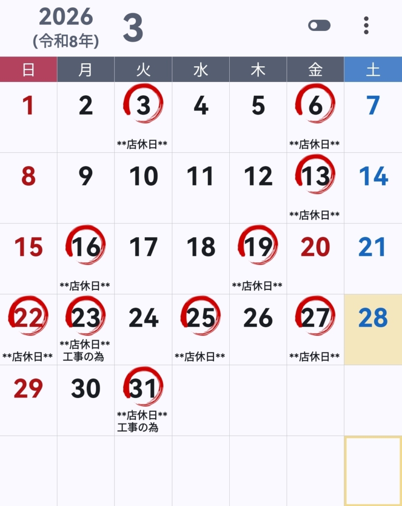 ※ 店休日の電話受付はお休みです。